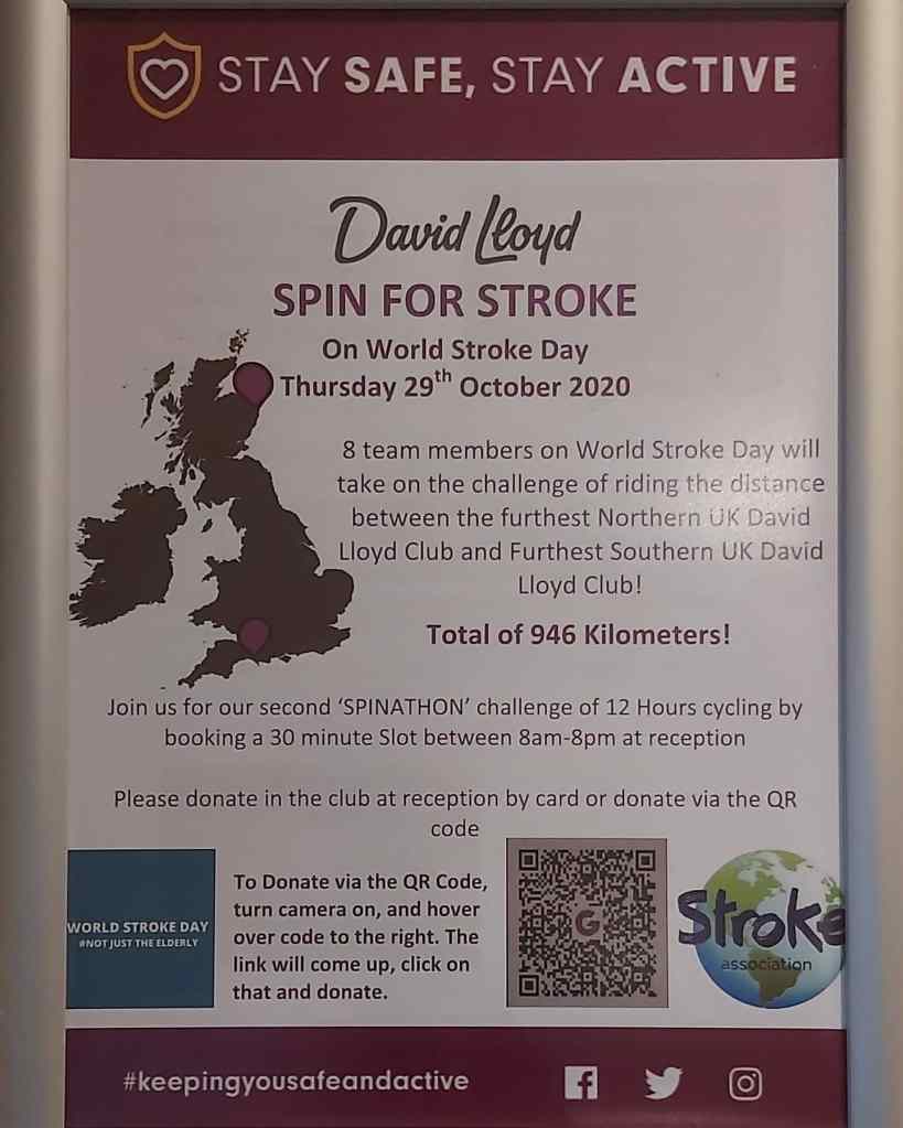 In August, I was approached by someone from Stroke Association and David Lloyd to see if I’d be interested in doing something for World Stroke Day in connection with DLGiving.
