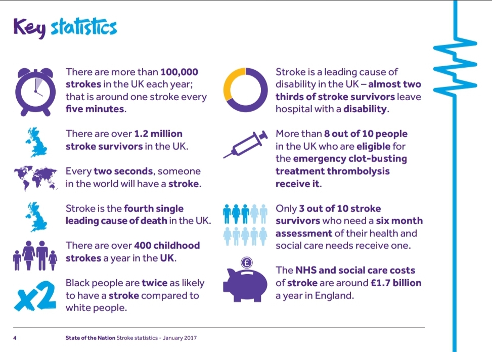Having a stroke was a frightening experience and luckily for me, things have turned out well, but for a lot they don’t, even if it’s happened at a young age. One of the stats above says “stroke is the biggest cause of disability in the UK and almost two thirds of patients leave hospital with a disability”. Sometimes there are people who overcome these, but a lot will be life-long.